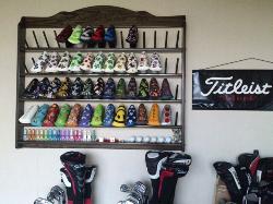 | 60 Headcover Rack Walnut With Stain Also Displays Golf Balls And Pivot Tools |