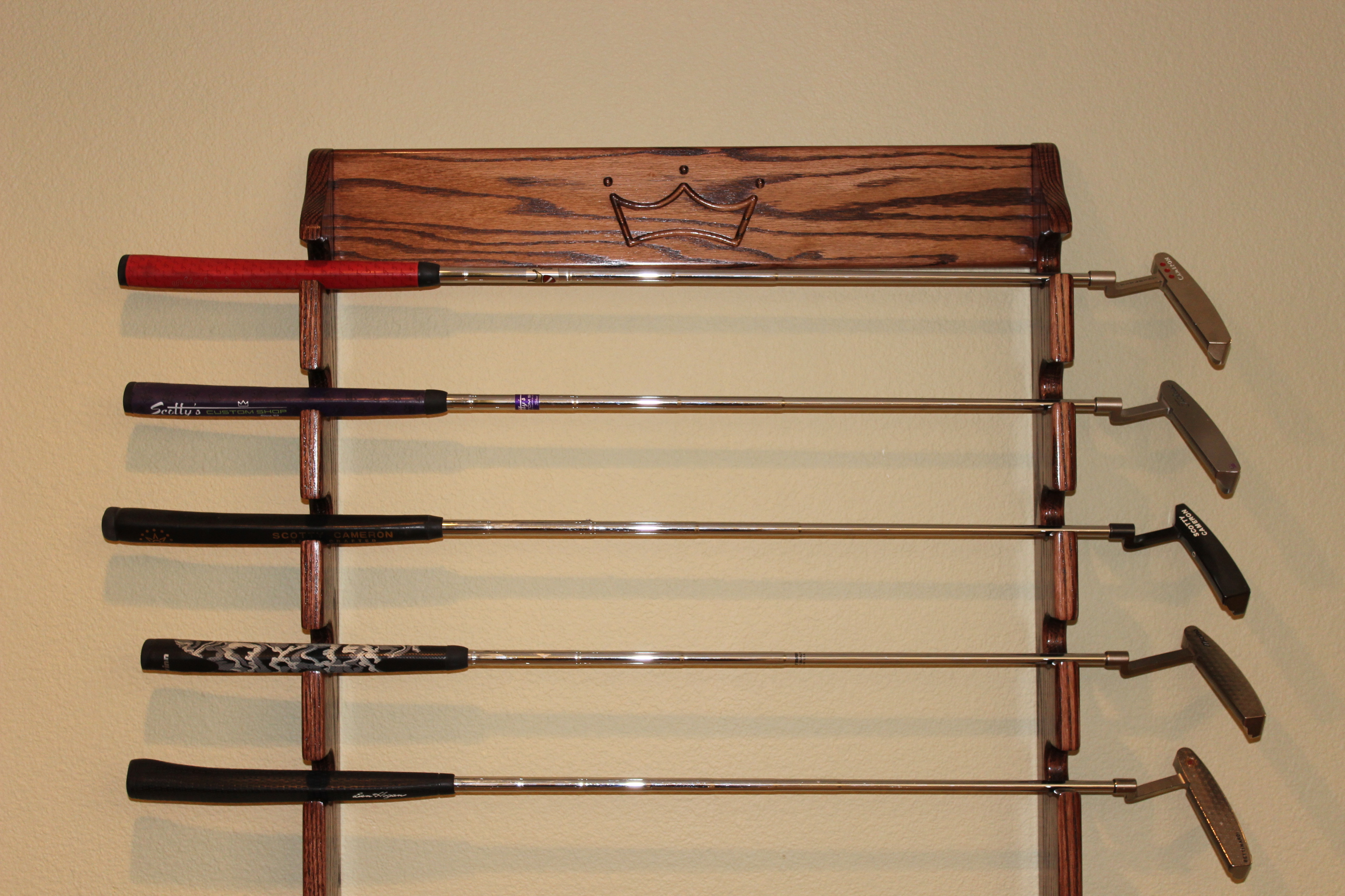 | 5 Putter 6 Headcovers Walnut Clear Finish One of my personal racks with wide spacing between the putters. |