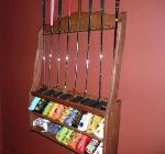 | Vertical 15 putter rack Oak with cherry stain Optional black suede leather flooring |